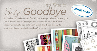 We have to make room for all the fun new stamp sets, accessories and surprises in the 2011-2012 Idea Book and Catalog that will be out July 1. As always, we have to say good-bye to some old favorites. Definitely Decorative items and the accessories are available only while supplies last, so if you see something you can't live without on that list, your best bet is to CLICK HERE! to order online right now.